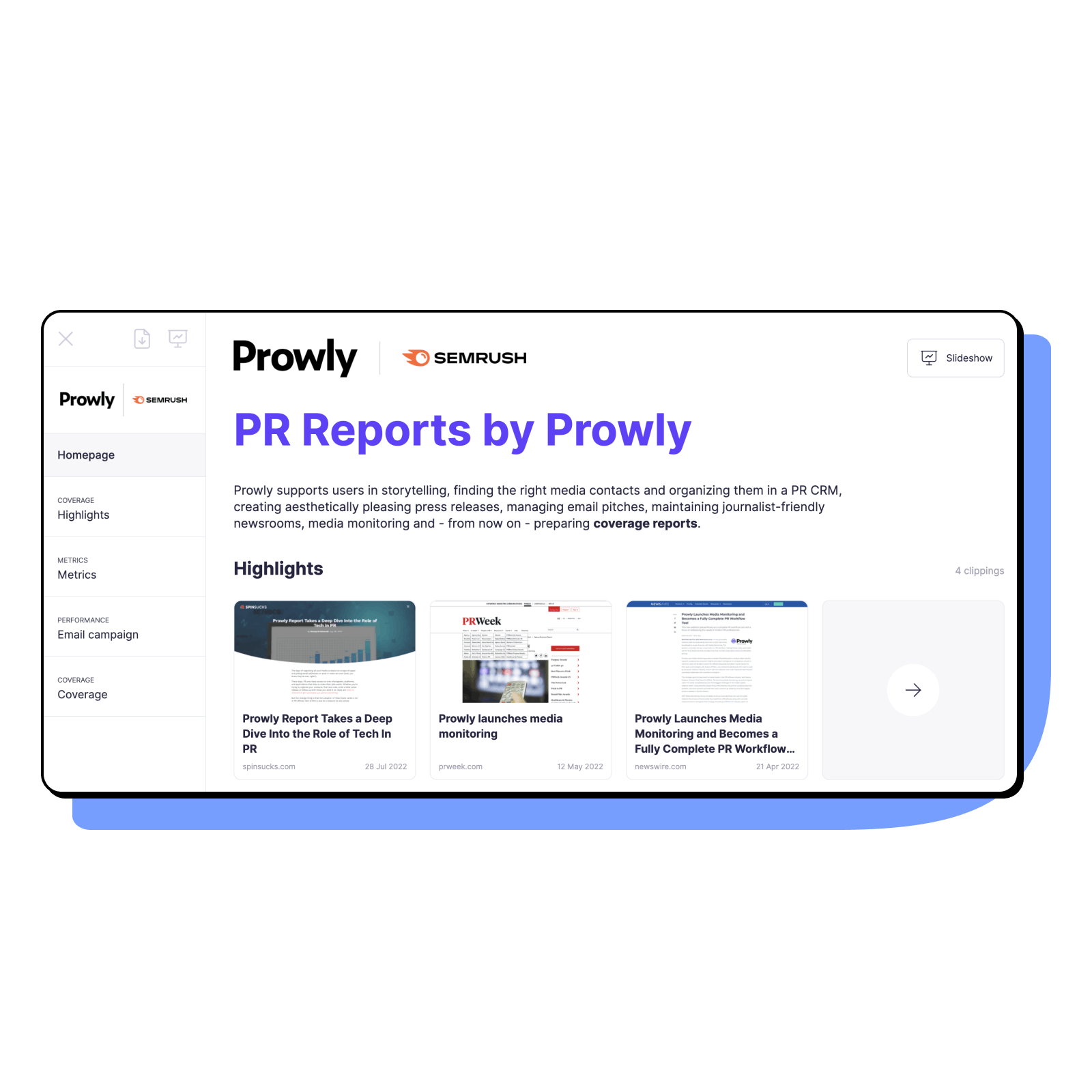 Show the business value of your PR activities and impress others with relevant metrics and visually pleasing reports.
