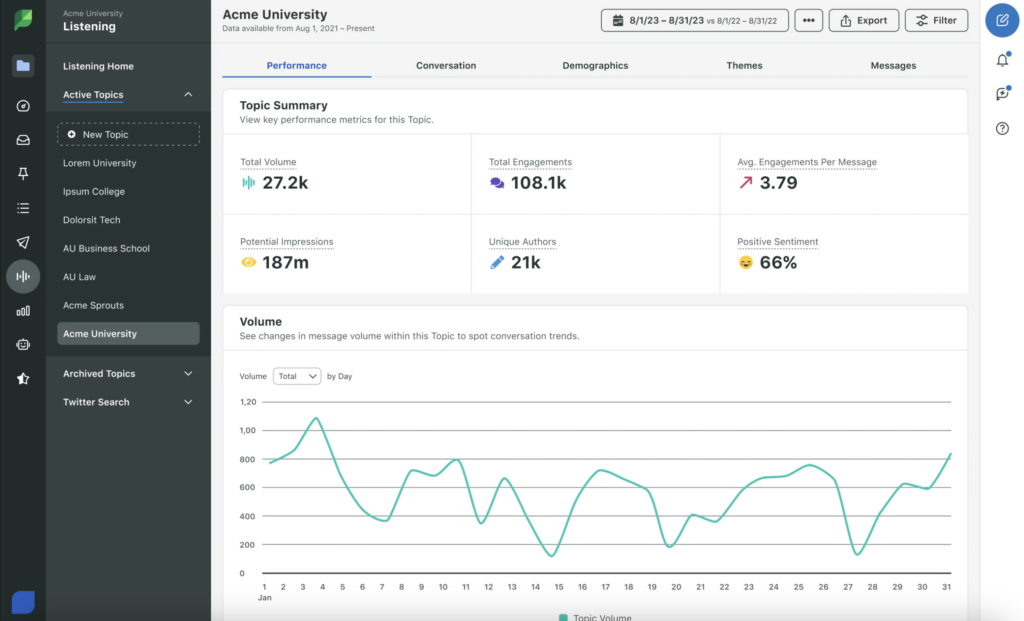 Sprout Social is a comprehensive social media management tool. It includes social listening capabilities alongside scheduling, engagement, and analytics tools in one interface.