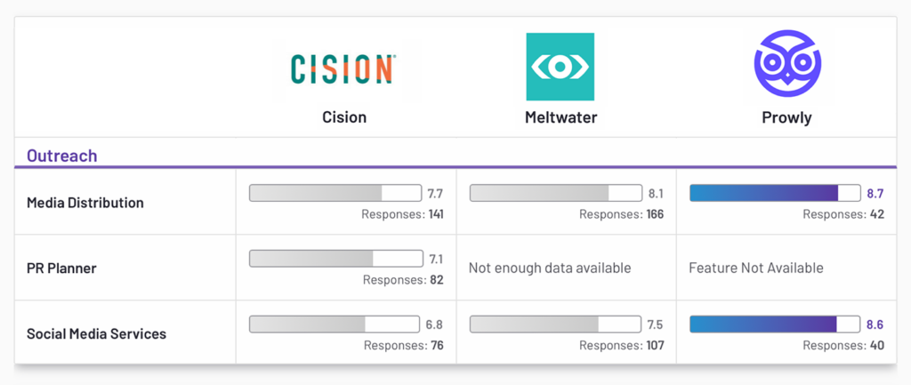 But that's not everything. Cision, Meltwater, and Prowly offer other PR features that are not covered in this general comparison. Find out more in the detailed comparisons below: