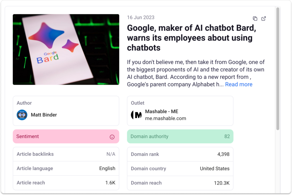 - No more media blind spots: you won't have issues catching mentions when a viral meme or a PR crisis is already yesterday's news