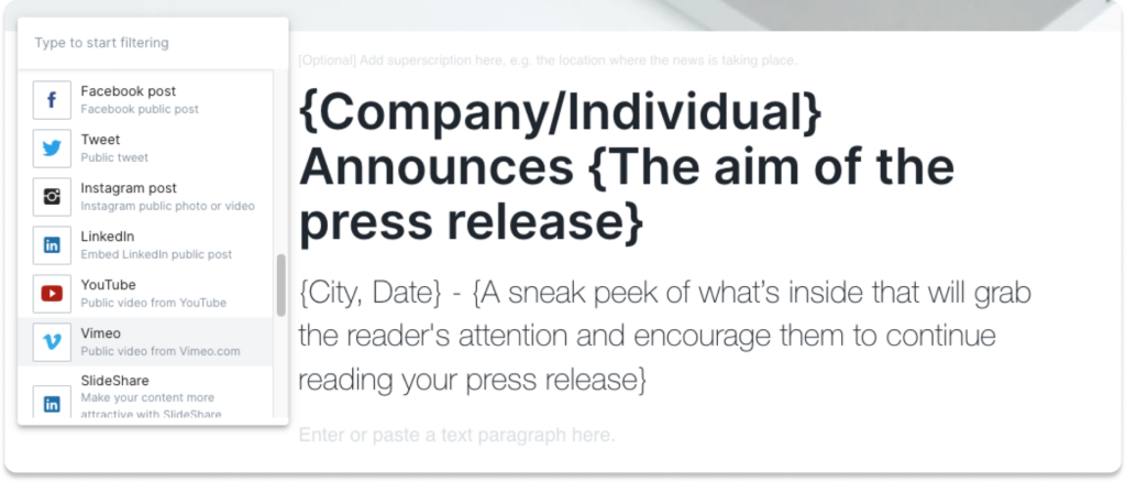 Add social media posts and visuals with a few clicks in Prowly Press Release Creator
