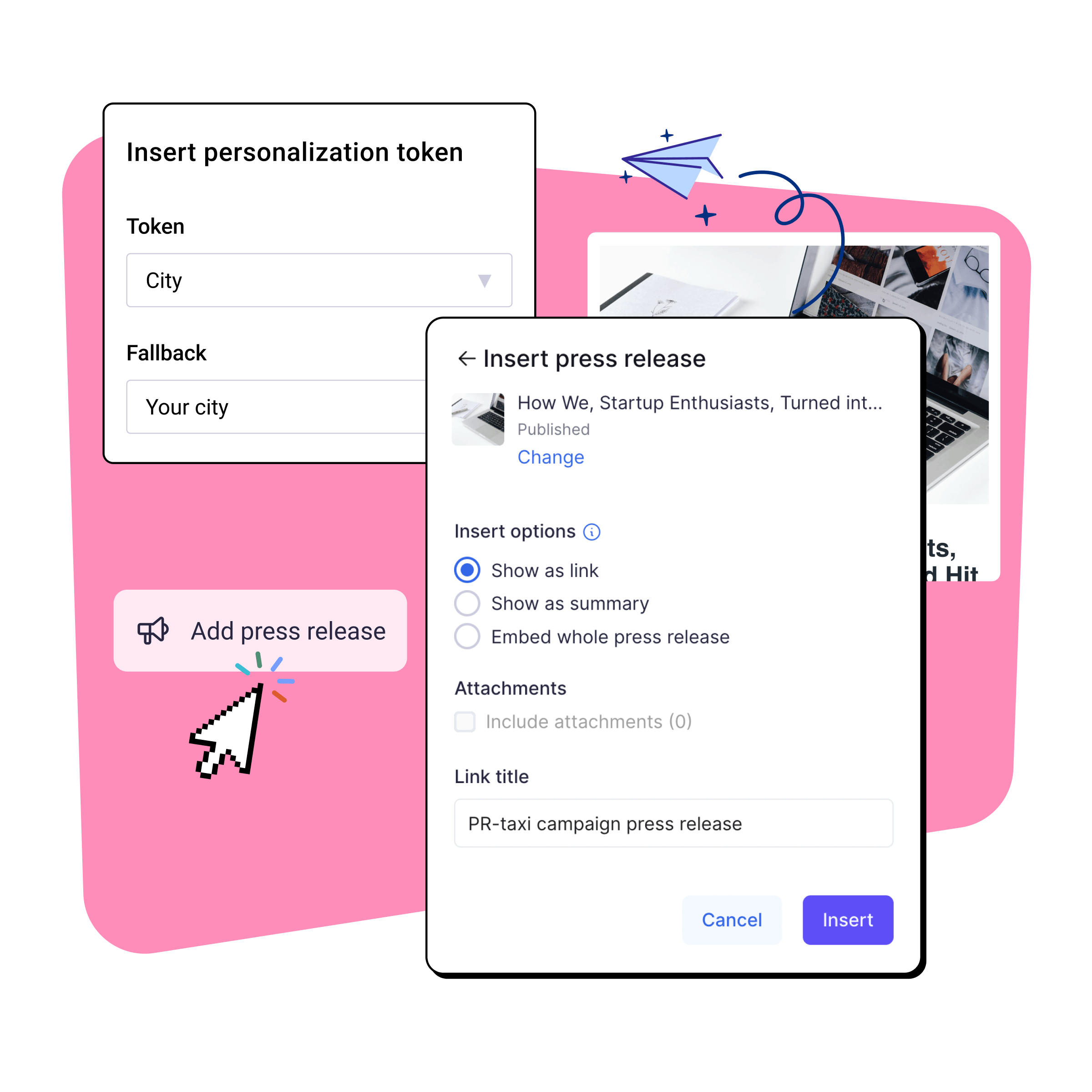 Send personalized emails at scale to engage recipients and move your conversation forward. Follow up knowing who interacted with your pitch, and receive responses from journalists—all in one place.